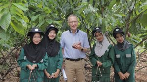 Rombongan juga meninjau nursery kakao dan laboratorium pengolahan kakao yang dilengkapi dengan mesin pengupas, pengering, hingga pengemasan produk. Kegiatan ini menunjukkan sinergi antara pendidikan vokasi dan praktik wirausaha berbasis komoditas unggulan daerah.