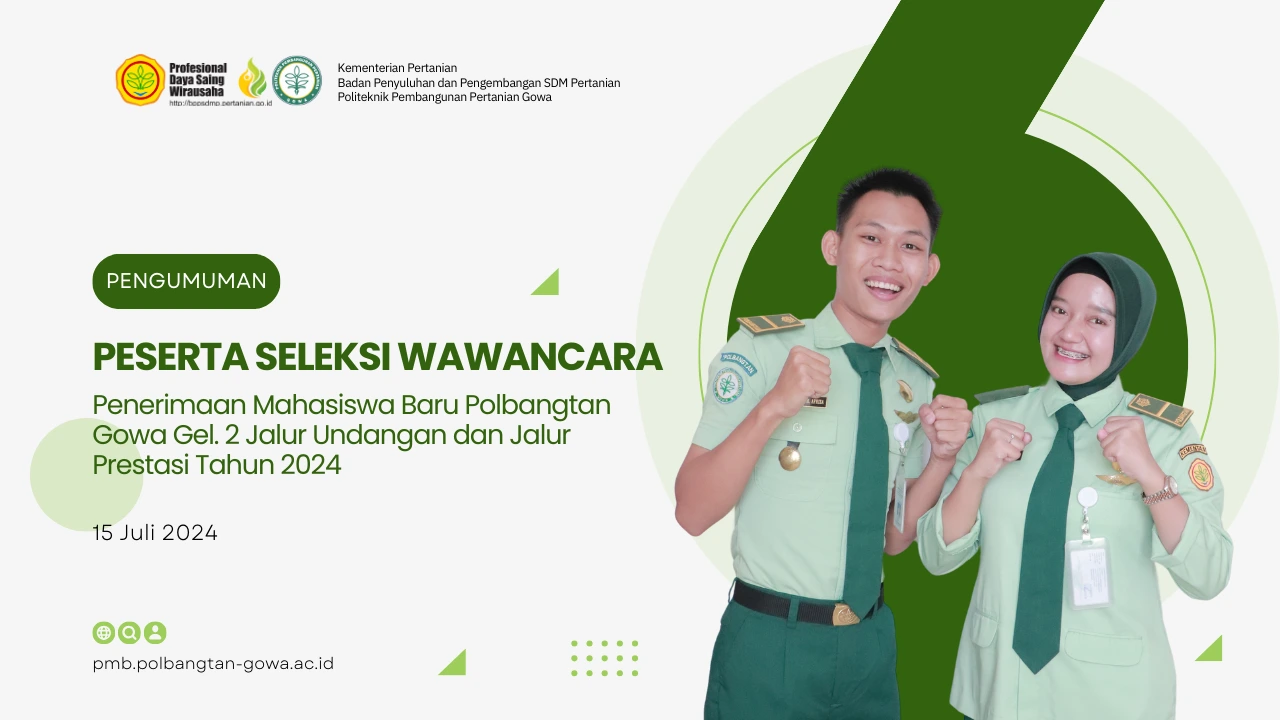 Berdasarkan Surat Keputusan Direktur Polbangtan Gowa Nomor 3710/Kpts/HK.160/ I.10/07/2024...