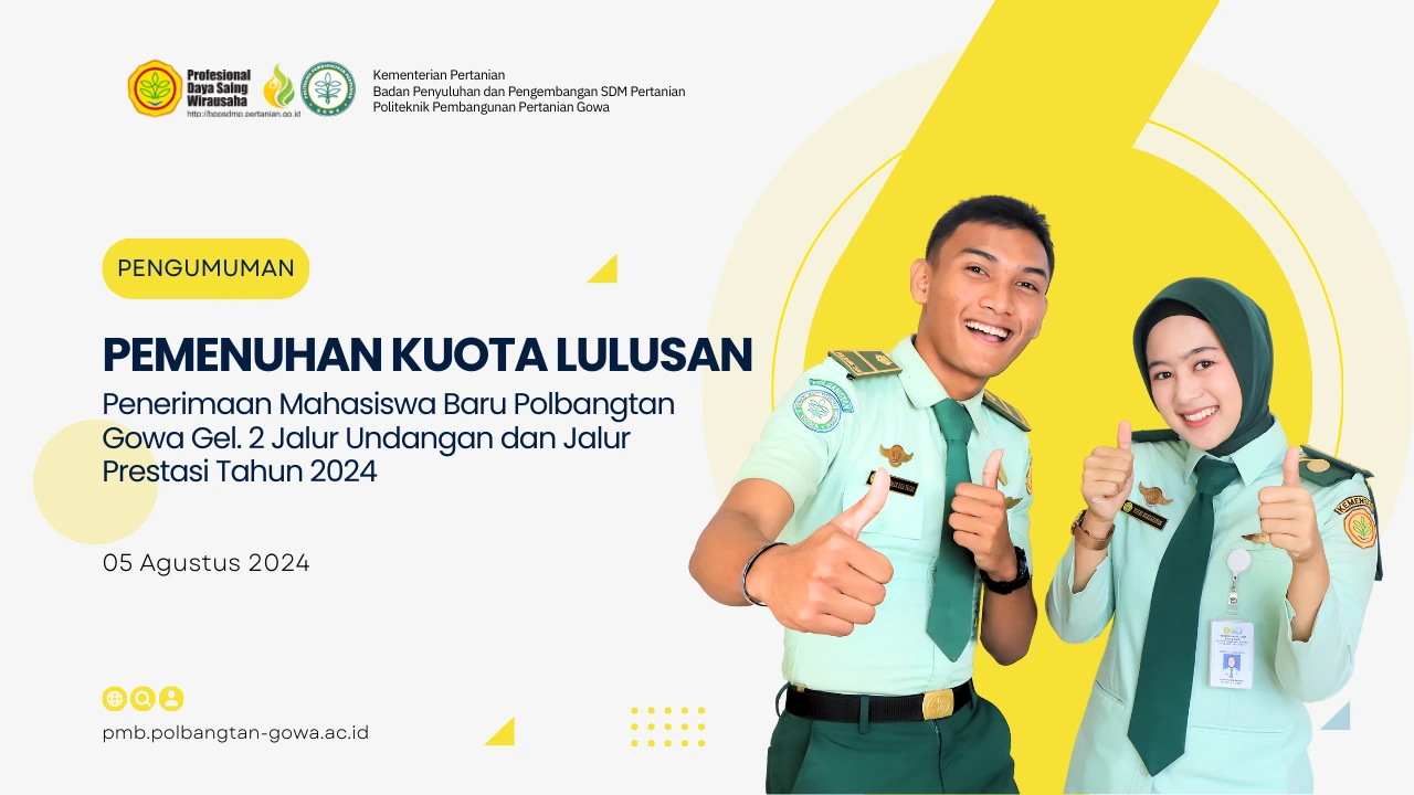Berdasarkan Surat Keputusan Direktur Polbangtan Gowa Nomor 3458/Kpts/HK.160/ I.10/07/2024...
